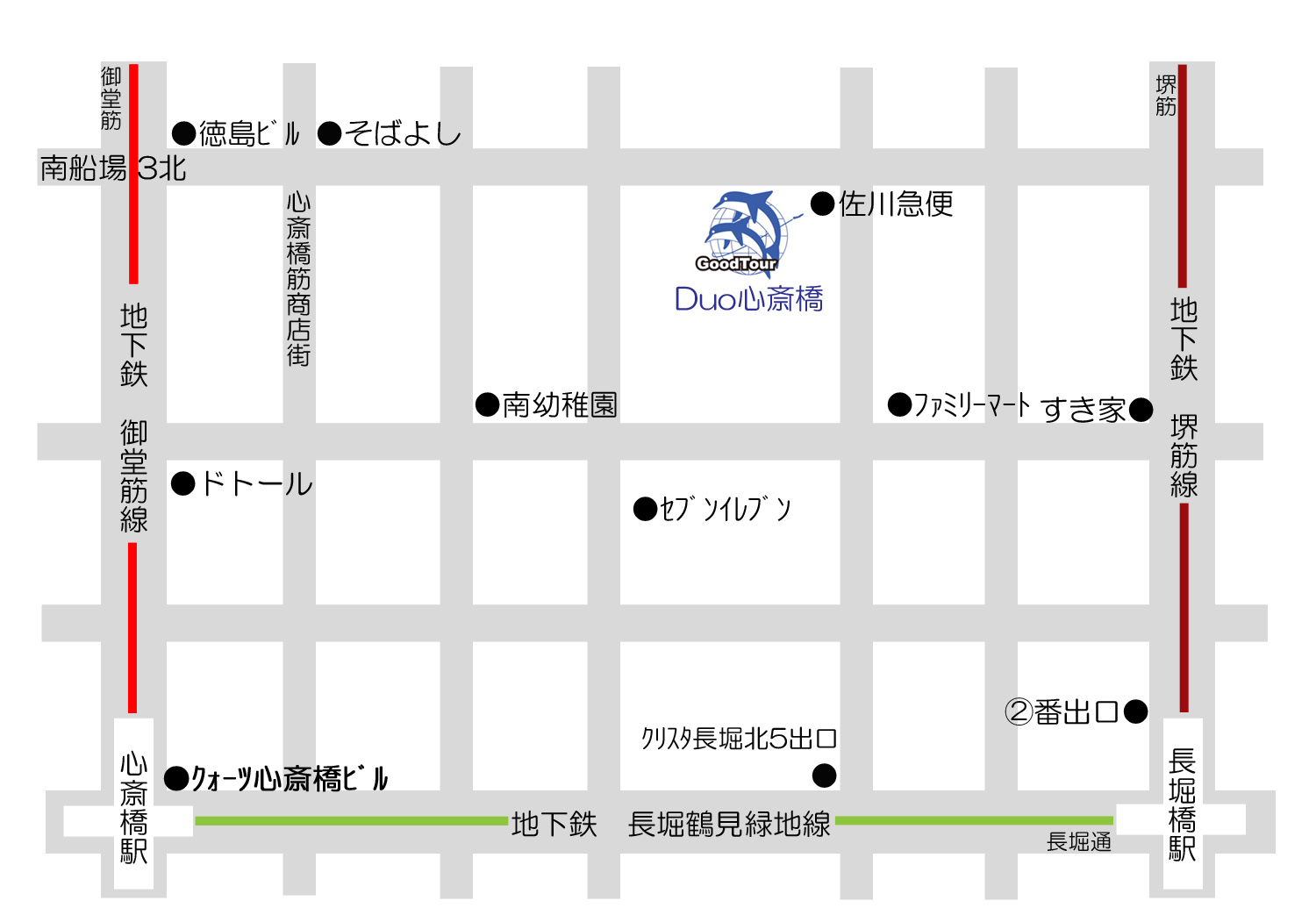 大阪市営地下鉄「心斎橋駅」下車約7分